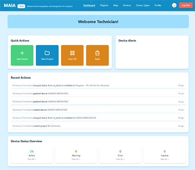 - Maia unterstützt über 30 Sensortypen verschiedener Herstellerinnen und Hersteller. Neue Sensortypen können innerhalb weniger Stunden in die Plattform eingebunden werden. Die Daten gelangen automatisch über verschiedene Wege in das System – ob per LoRaWAN-Funk, MQTT, REST-Schnittstellen oder Datei-Upload.