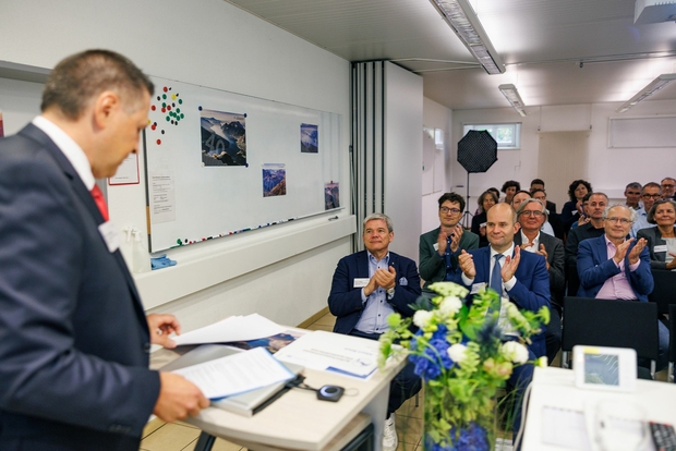 Titelbild: BAFU-Direktorin Katrin Schneeberger und ihr Chef, Bundesrat Albert Rösti, im Gespräch mit Eawag-Direktor Martin Ackermann am AKV-Jubiläum in Kastanienbau. (Foto: Christian Maugg, AKV)