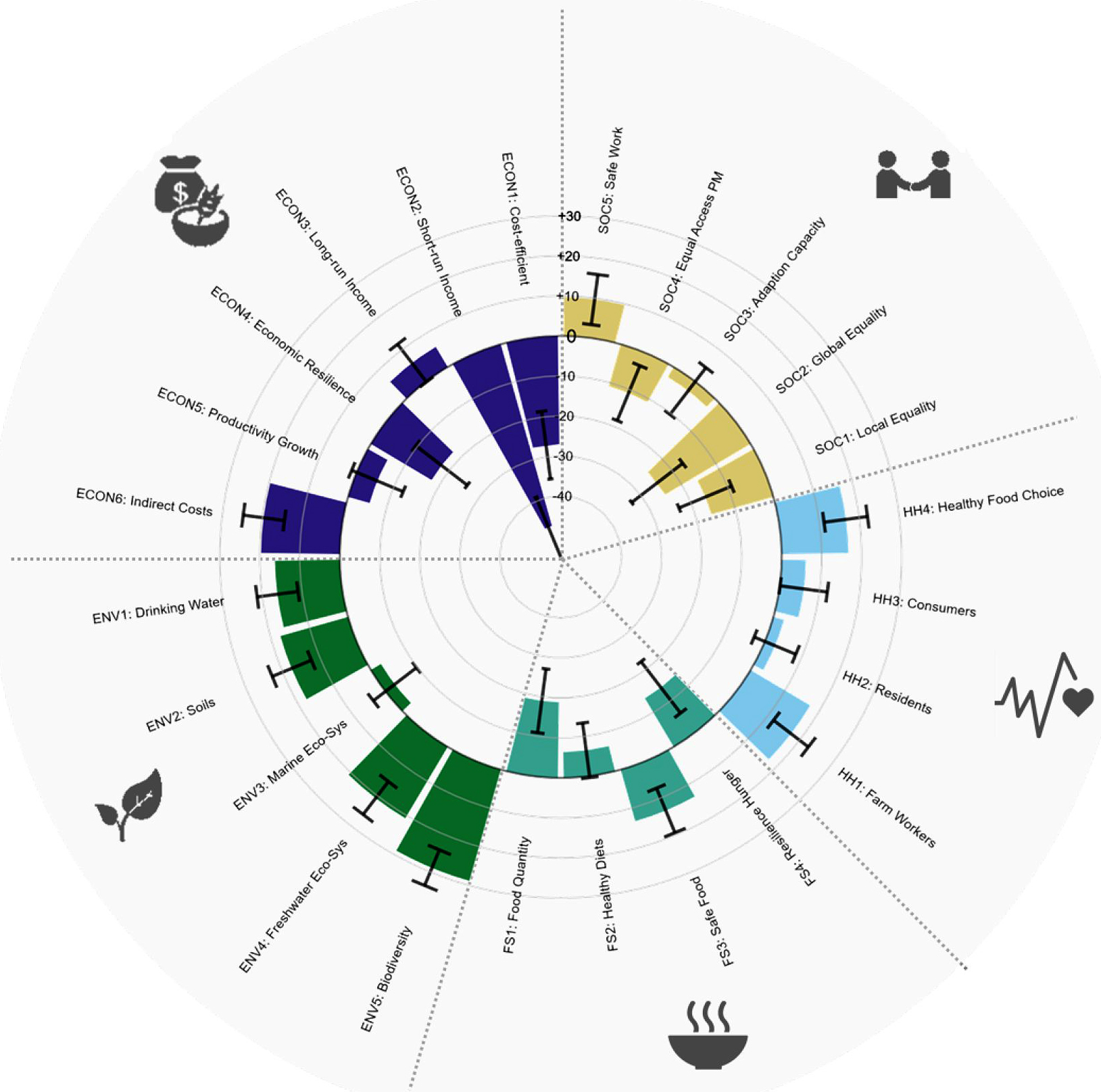 Bei der ökonomischen Bewertung gab es dagegen starke Unterschiede. In Nordamerika, Europa und Australien rechneten in etwa genauso viele Expertinnen und Experten mit positiven wie mit negativen Auswirkungen auf das Einkommen der landwirtschaftlichen Betriebe – zumindest kurzfristig. In Asien, Afrika und Südamerika sahen die Befragten in der Umstellung dagegen eher auch eine ökonomische Chance. Auch beim lokalen Zugang zu sicheren Lebensmitteln erwarten Befragte dieser Kontinente von einer Umstellung viel stärkere positive Impulse als solche aus Nordamerika, Europa und Australien.