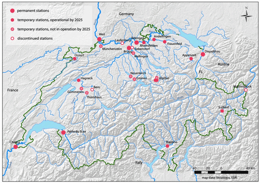 The “National monitoring programme for substance load in Swiss watercourses” (NAWA-Fracht, formerly known as NADUF), monitors the chemical-physical state of Swiss rivers.