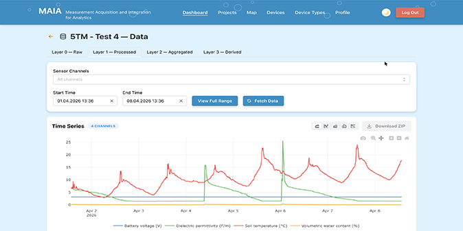 Maia is the data platform of the SensorLab at Eawag. It handles the entire journey of sensor data – from field collection through decoding and quality control to delivery for analysis. The SensorLab operates Maia as a service for research: scientists can focus on analysing their data without having to manage technical infrastructure.
