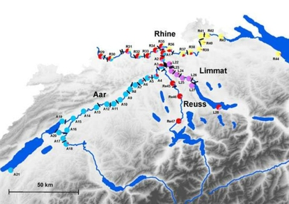 Up until now, the chub has seldom been stocked in Swiss waters, so the genetic population structure has not been distorted, in contrast to that of the trout. “This makes the chub the ideal model for investigating the extent to which fish ladders at river power plants and other barriers promote genetic exchange between separated populations,” said Alexandre Gouskov, chief author of the Eawag study “Fish population genetic structure shaped by hydroelectric power plants in the upper Rhine catchment”, which appeared recently online in the scientific journal Evolutionary Applications.