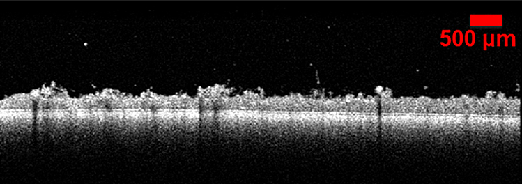 Optical coherence tomography of the biofilm on the membrane: A biofilm with protozoans and metazoans (left), which feed on bacteria, is more heterogeneous and porous than a biofilm consisting only of bacteria (right).