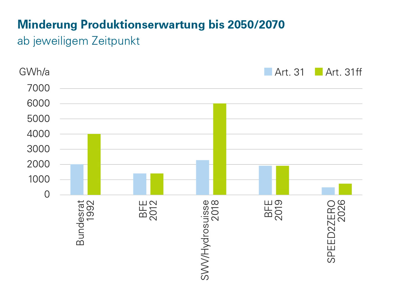 La nouvelle base de données est un projet de l’initiative SPEED2ZERO, un programme financé par le Conseil des EPF rassemblant des institutions du domaine des EPF et des partenaires. Pour sa clôture à Berne, les scientifiques ont également modélisé les effets de l’application des dispositions relatives aux débits résiduels pour la période allant jusqu’en 2050. Les résultats montrent qu’une application stricte de l’art. 31, al. 1 LEaux entraînerait à partir d’aujourd’hui une perte supplémentaire de production de 484 GWh jusqu’en 2050. Ajoutée au déficit existant, la perte serait donc de 1597 GWh en 2050. Les détails des simulations sont indiqués en annexe.