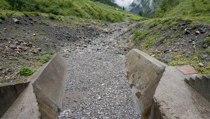 Photo de couverture: En aval des barrages concédés avant 1992, le débit résiduel est encore aujourd'hui très faible à de nombreux endroits. (zvg)