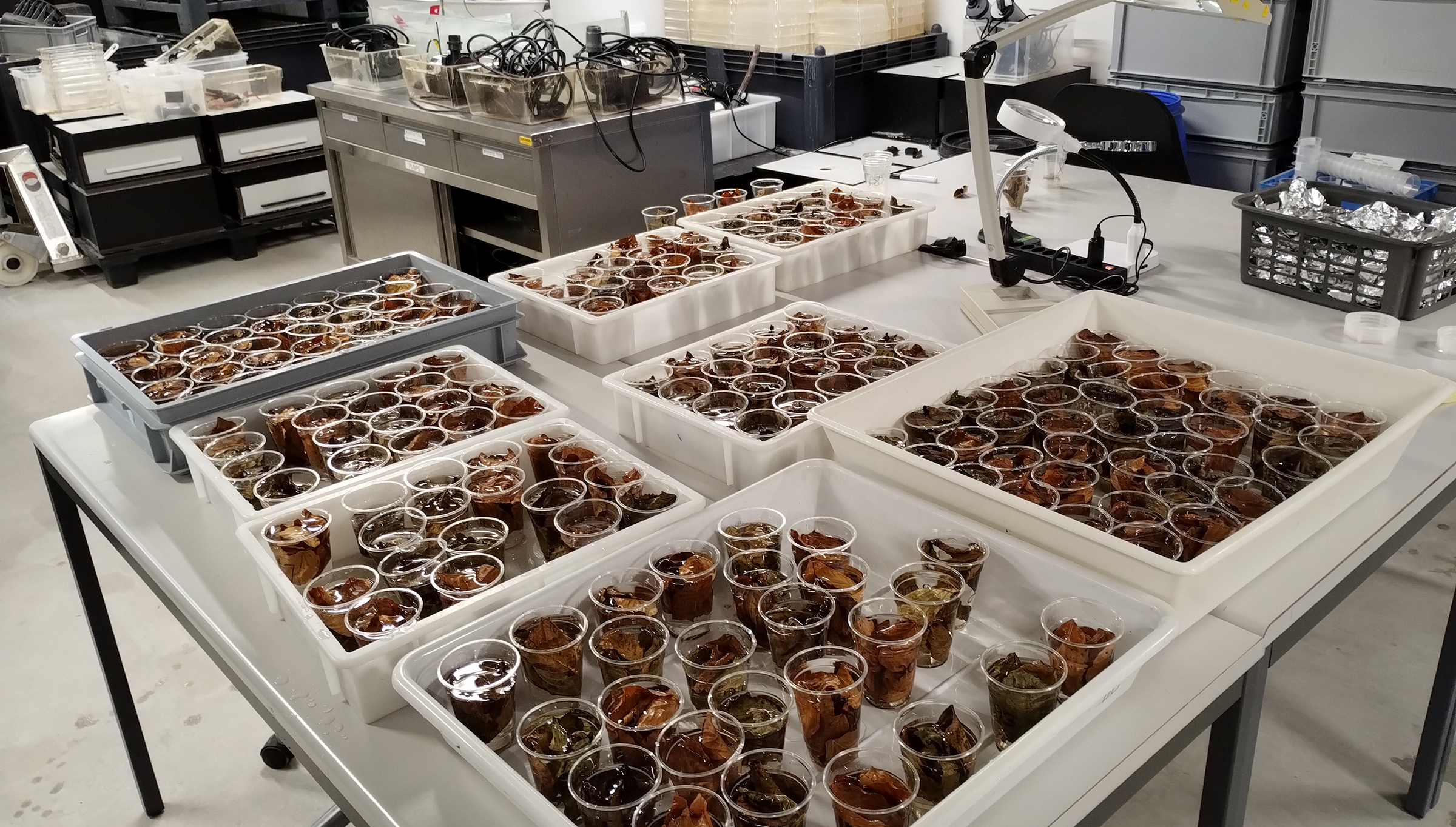 Afin de découvrir les effets des changements d'exposition et d'ordre, Ireland a ouvert un véritable buffet de feuilles. Ce menu a été servi à des amphipodes, des crustacés que l'on trouve naturellement toute l'année dans les ruisseaux et les rivières de Suisse. Au cours des différentes phases du test, les amphipodes ont reçu soit d'abord des feuilles de hêtre (pauvres en nutriments), soit d'abord des feuilles d'aulne glutineux (riches en nutriments), et ce pendant une durée variable.