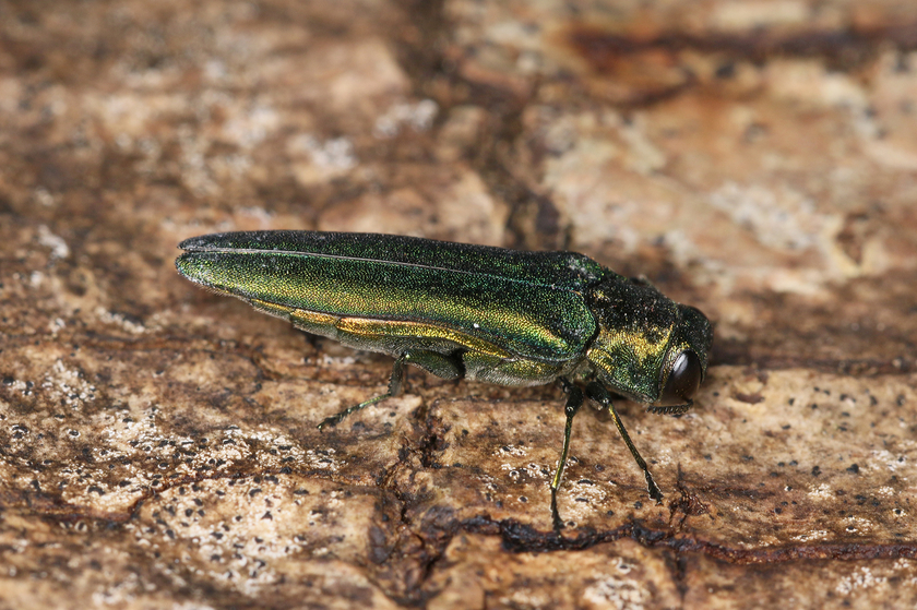L'agrile du frêne (_Agrilus planipennis_) est un insecte terrestre qui détruit des peuplements entiers de frênes en Amérique du Nord et depuis quelques années aussi en Europe de l'Est. Photo: Beat Wermelinger, WSL.