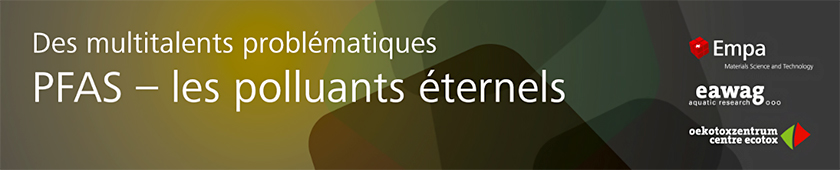 Le portail web PFAS de l'Empa, de l'Eawag et du Centre Ecotox fournit des informations et des données de fond sur la pollution causée par cette classe de substances problématiques, ainsi que sur les mesures prises par les trois instituts pour y remédier.