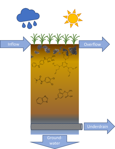 Das Ziel des Projekts „Blue Green Fate“ ist es, das Verhalten von organischen Chemikalien (Biozide, Industriechemikalien, Chemikalien aus Reifenabrieb) in blau-grünen Infrastrukturen (BGIs) besser zu verstehen. Urbaner Regenwasserabfluss enthält eine komplexe Mischung verschiedener organischer Chemikalien, die die Qualität von Grund- und Oberflächengewässern beeinträchtigen können. Obwohl BGI-Systeme zunehmend zur Bewirtschaftung von Regenwasser eingesetzt werden, versteht man ihre Wirksamkeit bei der Entfernung neuartiger organischer Schmutzstoffe, wie z.B. gelöste Chemikalien aus Reifenabrieb, bislang unzureichend. Zudem können Extremwetterereignisse Transport- und Rückhalteprozesse von Schmutzstoffen erheblich beeinflussen, wobei diese Effekte bisher kaum untersucht wurden. Daher untersucht das Projekt die Transportdynamik ausgewählter organischer Schmutzstoffe in BGIs und wie diese sich unter Extremwetterbedingungen verändert.
